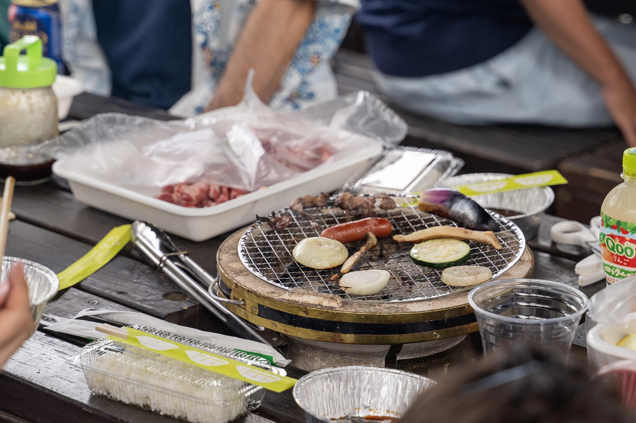 バーベキューコーナー お電話の予約にてお肉などの用意ができます。 お肉等の材料はお客様の持ち込みも可能 とれたて野菜の直売所が併設しています。 七輪(1台):2,500円(網・炭付き) 最大50名様まで利用可能! 七輪の数・料金はご相談に応じます。 料金・内容につきましてはお電話(090-8900-2621)でのお問合せ・ご予約をお勧め致します。 スロープ設置で、車椅子での使用もできます